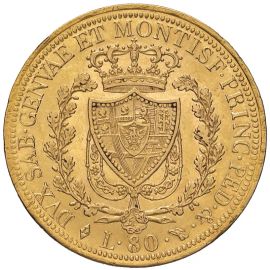 CARLO FELICE (1821-1831) 80 LIRE 1824 Turin Au Gig. 2 Mont. 2 EF/UNC.