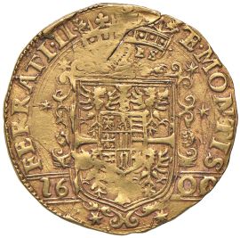 Au gr. 13,00 D/ VINCENTIVS D G DVX MANT IIII Busto paludato a d. R/ ET MONTIS FERRATI II Stemma coronato, sulla fascia in basso data. CNI 55/55 MIR 286/2