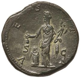 Ae gr. 29,23 D/ LVCILLAE AVG ANTONINI AVG F Busto a d. R/ VESTA SC Vesta a s. in prossimità dell’altare sacrificale. Cohen 94. RIC 1779.