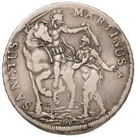 Ag gr. 25,52 D/ Stemma ornato e coronato sorretto da due pantere R/ Il Santo a cavallo taglia il mantello per il mendicante. MIR 237/13 Bellesia 71