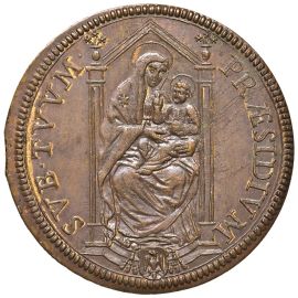 Cu gr. 5,36 D/ Stemma sormontato da tiara e chiavi decussate R/ Madonna in trono con il Bambino