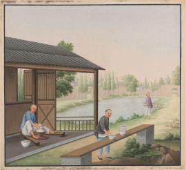 tempera su carta, raffigurante la creazione della porcellana cinese; cm 33,8x35,5 (10)