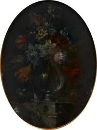 coppia di dipinti su tavola ovale, cm 36x26,5