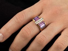 ANELLO A FASCIA IN ORO GIALLO CON TORMALINE E DIAMANTI