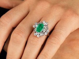 ANELLO IN ORO BIANCO CON SMERALDO E DIAMANTI