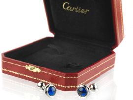 CARTIER PAIO DI GEMELLI IN ARGENTO E PIETRE SINTETICHE