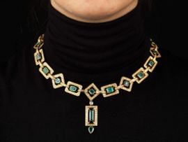 COLLANA IN ORO GIALLO CON SMERALDI E DIAMANTI
