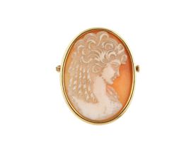 COPPIA DI SPILLE IN ORO GIALLO CON CAMMEI DI CONCHIGLIA