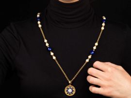 LUNGA COLLANA IN ORO GIALLO CON PERLE E LASPILAZZULI