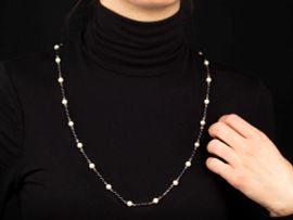 LUNGA COLLANA IN ORO GIALLO E SMALTO CON PERLE