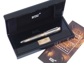 Baron Max von Oppenheim's life was filled with a passion for exploring and discovery, for beauty and the fascination of the Middle East. To honour a man who roamed from Europe to the East the design of the Limited Edition Max von Oppenheim is inspired by the domes of Eastern mosques. Pale grey lacquer inlays on the barrel, made of 925 sterling silver, are reminiscent to the decoration and frescoes of the Middle East while the fountain pen's gold-plated rings recall the famous designs and reliefs from Tell Halaf.