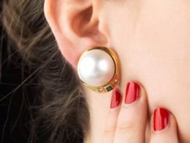 PAIO DI ORECCHINI IN ORO GIALLO CON PERLE MABE SMERALDI E DIAMANTI