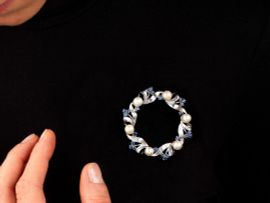 SPILLA IN ORO BIANCO CON PERLE E ZAFFIRI