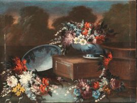 STILL LIFE OF FLOWERS IN A LANDSCAPE