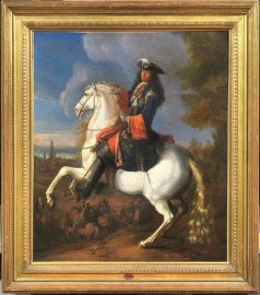 Scuola francese, sec. XVIIILUIGI XIV A CAVALLOolio su tela, cm 64,5x54,5