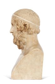 Anche lo scultore del ritratto qui offerto interpreta, con lo spirito classicista settecentesco, il volto di Omero, ossuto e dagli zigomi sporgenti, solcato da numerose rughe, tramandato da questi antichi esemplari, così come i suoi occhi incassati e aperti a mostrarne la cecità secondo tradizione.