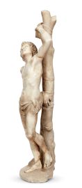 L’elegante immagine marmorea, che nella tipologia, nella slanciata postura ancheggiante e nel perizoma increspato si accosta ad alcune statuette raffiguranti lo stesso San Sebastiano o il Cristo alla colonna attribuite al milanese Cristoforo Solari (Milano, Museo del Castello Sforzesco; già Firenze collezione Romano, Pandolfini 19 ottobre 2016, n. 5; etc.), richiama, per l’intaglio sottile e pungente, con effetti virtuosistici nella lavorazione a trapano dei capelli, gli Apostoli, Profeti e Santi ad altorilievo del fastoso Monumento funebre dei Duchi d’Orleans, oggi nella Basilica di Saint-Denis a Parigi, scolpito a Genova nel 1502-4 dai comaschi Michele d’Aria e Girolamo Viscardi in collaborazione con i fiorentini Benedetto da Rovezzano e Donato Benti.
