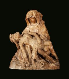 Di taglio e impostazione molto simile all’opera offerta è il gruppo oggi al Victoria and Albert Museum di Londra: entrambe sono caratterizzate da una sorprendente espressività, soprattutto nella resa del corpo di Cristo con le ossa del torace ben in evidenza, e nella ricchezza di drappeggi del manto della Vergine.