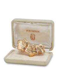 in oro giallo 18kt, diamanti taglio brillante per ct 0.60 circa, dim. 65x35 mm, firmata "Boucheron", punzoni 750 e del fabbricante con numero seriale, gr 24. Corredata di astuccio.