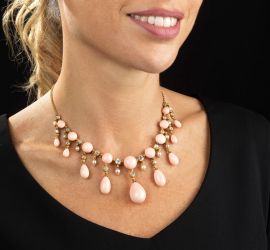 ROSE CORAL PEARL AND DIAMOND GOLD NECKLACE