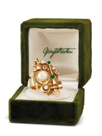 GIORGIO FACCHINI "PREZIOSITA' DELLO SPAZIO" ANELLO CON PERLA DIAMANTI E SMALTO VERDE, 1972