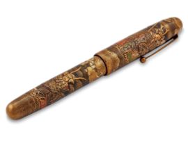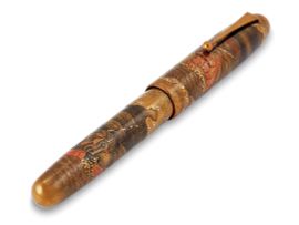 One of the most beautiful and less common "Emperor" model Japanese pens with Maki-e decoration, depicting on the case back a Samurai warrior armed on a horse and on the cap an "Onna bugeisha" (女 武 芸 者), a Samurai woman on horseback armed with bow, arrows and "naginata" (a spear with a curved blade).