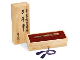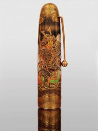 Una delle penne giapponesi modello "Emperor" con decorazione Maki-e più belle e meno comuni, raffigurante sul fusto un guerriero Samurai armato a cavallo e sul cappuccio una "Onna bugeisha" (女武芸者), una donna Samurai a cavallo armata di arco, frecce e "naginata" (una lancia con lama ricurva).
