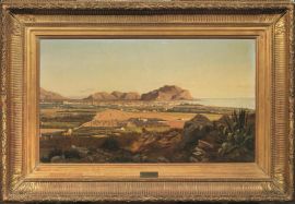 Con una pittura pulita e luminosa, sempre piacevole per il suo equilibrio, indaga i paesaggi di Palermo e dintorni, come nel caso di questa veduta che spazia tra terra e mare fino al Monte Pellegrino sullo sfondo, lasciandoci una suggestiva testimonianza della città di secondo Ottocento. Nel dipinto dall'ampio taglio panoramico, l'artista sceglie di posizionarsi in un punto sopraelevato rispetto alla piana palermitana, accentuando, così, l'effetto prospettico.