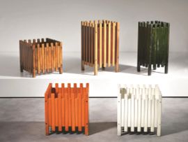 AN UMBRELLA STAND, GREEN LACQUERED WOOD