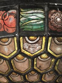 Iscrizione su uno dei vetri "Fornaci San Lorenzo Chini & co., Mugello, Italia" e marchio