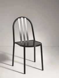 EIGHT STACKABLE CHAIRS, BLACK METAL STRUCTURE