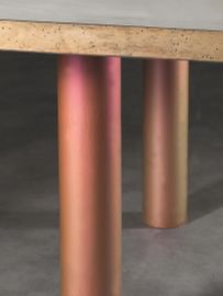 struttura in metallo verniciato sfumato dall'oro al rosa, piano in legno laminato bianco