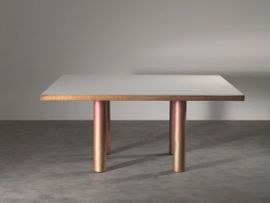 This table stood in the conference room at the first headquarters of the Superstudio in Piazza di Bellosguardo 1, where I saw it on 1 April 1968 when I stopped by for the first time. The table was crafted by the artisans who collaborated with the three members already composing the group: Adolfo, Cristiano and Roberto. I don’t know who designed it, but the design was intelligent: it was the first such table I had seen which did not stand on a central column; despite this fact, the legs did not constitute an impediment to the legs of the people seated around it. The table incorporated elements from the Superstudio’s work: the legs, for example, were made of pipes left over from outfitting the MACH2 discotheque in Via Torta near Piazza Santa Croce, and finished with the paint used on the lighting tracks that characterised the club’s interior – as shown in the photo. The first stages of creative work at the Superstudio were carried out around this table; this is where the Monumento Continuo and the environment for the MoMa show were conceived. This was the site of our broken-off interview with the Newsweek journalist who fled, calling us ‘Radicals!’; the anecdote, recounted to Germano Celant, may be said to have originated the denomination of the entire ‘movement’. Above all, it was in front of this table that Christian used a self-timer to snap the first official photo of us all and it was on it that our Hidden Architecture was photographed.
