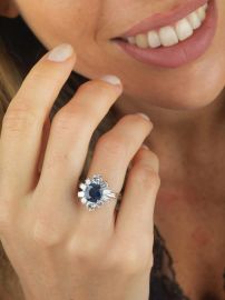ANELLO A FORMA DI FIORE CON ZAFFIRO E DIAMANTI