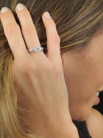 in oro giallo rodiato18kt, diamante taglio brillante di ct 1.19, colore I, purezza IF, diamanti taglio tapes per ct 0.40 circa, punzone 750, mis. 12, gr. 4. Corredato di certificato I.G.I del 29/01/1991 attestante le caratteristiche.