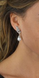 PENDANT PEARL AND DIAMOND EARRINGS IN PLATINUM