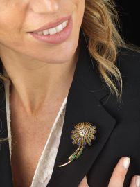 SPILLA A FORMA DI FIORE CON ZAFFIRI SMERALDI E DIAMANTI