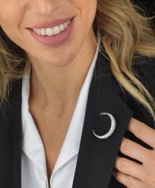 HALFMOON- SHAPED DIAMOND BROOCH IN 18KT WHITE GOLD