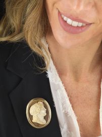 CHALCEDONY CAMEO BROOCH IN 18KT YELLOW GOLD