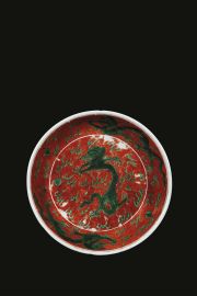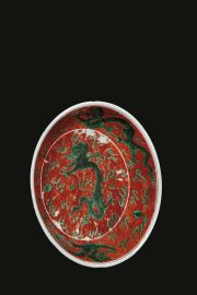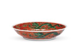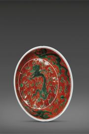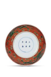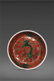 清康熙 矾红绿彩龙纹盘 《大清康熙年制》款