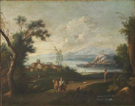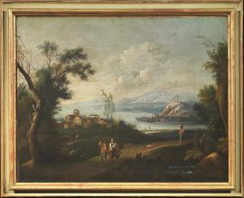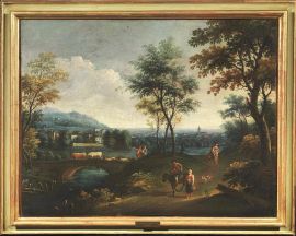 PAESAGGIO FLUVIALE CON PONTE FIGURE E ARMENTI