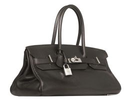 HERMES BORSA BIRKIN SHOULDER 42in pelle Togo nero, dettagli in metallo, fodera in pelle nera. Corredata di lucchetto, chiavi, sacchetto, scatola e borsa protettiva per la pioggia originali.