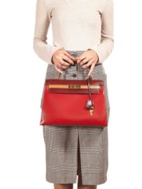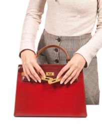 risalente ai primi anni ’90, in Box Calf tricolore, bordeaux, rosso e gold, con metalleria in ottone. Corredata di lucchetto.