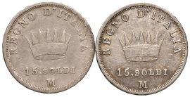 MILANO. NAPOLEONE I RE D’ITALIA (1805-1814) DUE MONETE DA 15 SOLDI 1808