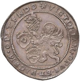 Ar gr. 9,71 D/ Leone con stemmi del Doge, Podestà e Camerlengo R/ Gallo es. anno Mont. 1942 Paol. 505