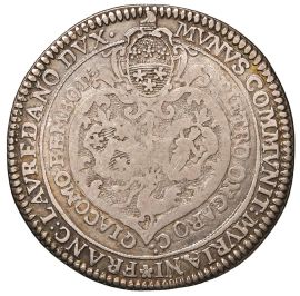Ar gr. 9,58 D/ Stemmi del Doge, Podestà e Camerlengo; sopra Gallo R/ Stemmi dei quattro Deputati tra due putti; in mezzo data Mont. 2815 Paol. 574