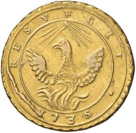Au gr. 4,38 D/ Busto a d. R/ Fenice sulle fiamme illuminata da raggi Gig. 9