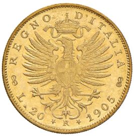 SAVOIA VITTORIO EMANUELE III (1900-1943) 20 LIRE AQUILA SABAUDA 1905 Roma