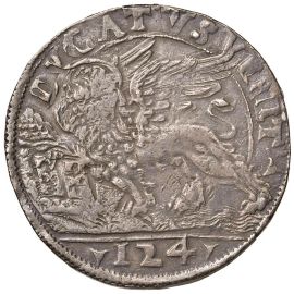 Ar gr. 32,78 D/ S. Marco porge il vessillo al Doge genuflesso R/ Leone di S. Marco. Es. 124 Mont. 762 Paol. 11