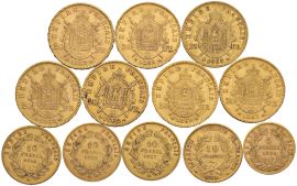FRANCIA NAPOLEONE III (1852-1870) DODICI MONETE IN ORO